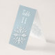 Vit snöflummel på ett silver-blått Bordsnummer för vinter-bröllop