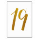 Bordsnummer 19: Det här avslappnad-bordsnumret för penselskriptet är angivet i en faux guld-folie. VIKTIGT: Det utseende på folie som visas är en tryckt effekt. Det är ingen riktig folie. Om du inte vill ha den här effekten kan du ta bort den på följande sätt: 1) Klicka på "Anpassa ytterligare". 2) Hitta den bild som står i z-guld-folie och ta bort den. Välj sedan ditt eget färg i färger i bakgrunden.