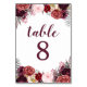 Bordsnummer Cards för Fall Marsala Peony Bröllop