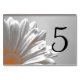 Lägg till en kursrörelse i bord på möhippan, giftermål-mottagningen eller party med Bordsnumren Högdagrar för contemporary Orange Blommigt. De här anpassningsbarna av elegant-blommor har ett digitalt utökat fotografi av blommigten av en blommar av blommor av daisy med orange och en bordsnummer-bakgrund i silver.