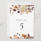 Det här bordsnumret innehåller bemiska blommigtar för vattenfärgsfall och ett enkelt serif-teckensnitt. Redigera alla formuleringar för att uppfylla evenemangets behov. Teckensnittet färg kan redigeras till 100 %. Det här redigerbara talet kan användas för alla händelser och är perfekt för din marktonsboho-hösthändelse. Bordsnumret är identiskt på framsidan och baksidan.
