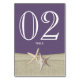 Starfish och burlap-tryckt bordsnummer-kort som uppfyller vår Beach Amore-inbjudan som ställts in på Lila, kan vara personlig och beställas individuellt. Alla delar av det här kortet skrivs ut. Det finns ingen riktig överlappning eller snäckor.