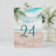 Ön Breeze Paweed Beach Scene, med Ocean Vågar, Sandy Beach och Handflatan Träd, med ett vackert teal blå himmel. Med Typsnitt för modern typografi. Ett Tropiskt sommarfack, eller en målbröllopsutformning - Personlig Bröllop, semestergäst på Bordsnumret Monteringskort! ~ Kolla min butik för att se hela bröllop-svit för den här designen!