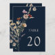 Bordsnummer i marinblå Blommigten Boho Bröllop