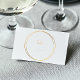 Ett förfinat platskort för bordsnummer med intertwinten guld-effektskript för ringar som omger elegant på en skarp vit bakgrund. Den minimalistiska, moderna utformningen ger en chic till mottagningar och party, med gott om utrymme för handskrivna bordsnummer för tydligt sittande och ett sammanhängande, uppskalat utseende. Observera att guld färg är tryckt.