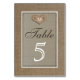 Bordsnummer-kort för Rustik Burlap Bröllop Bordsnummer
