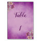Ett underbart bordsnummer för lila blommigt. Den här designen har en lila bakgrund med en vacker illustration av lilans blomma. Texten har ett vackert burgundteckensnitt. Mycket enkelt att anpassa, beställ din idag.