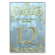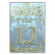 Golden Bokeh glitter ljus i en ljusblå teckning gör ett vackert bord-kort för alla tillfälle.