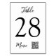 Elegant bord-kort i svartvitt med en ren och minimal utformning och en QR-kod för åtkomst till onlinen på menyn bröllop.