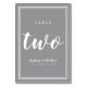 Denna utformning skapades för mindre intima bröllop firande. Enkel, minimalistisk och elegant bröllop Bordsnummer TWO-design har en contemporary med dubbla ram gräns i skarp vit på trendigets ultimata grått-bakgrund. Chicens utformning är tidlös men ändå modern sofistikerad. Anpassa designen i bröllop bord med dina bröllop-detaljer i skarpa, vita bokstäver och skript. Kortets baksida är en dubblett av framsidan. Beställ en för varje bord med de enskilda bordsnumren. Bord ONE genom TEN är individuellt designade och finns i min butik bjudna in till Zazzle. Om du behöver ytterligare nummer skapas du särskilt för en mindre plats, men skicka e-post till oss på InvitationSuites@gmail.com.