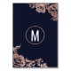 Elegant, chic och enkel, modern utskrift av blommor och typografi i ro guld på den moderna marinblåa bakgrunden, bröllop bord-kort. Den här klassiska och sofistikerade designen är perfekt för klasser, snyggtar och trendigets bröllopsmottagning. Anpassa med bordsnumren anpassningsbar längst fram eller lägg till ditt eget meddelande genom att klicka på knappen "Anpassa". Lägg också till en egen anpassad monogramstart på baksidan. All fotoutskriftsdesign.