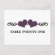 Söt och vismisk Elegant Hearts Bröllop Bordsnummer Postcard med ett finare-snurrande gräns adorberat med ett par lila hjärtan. Detta moderna bord-kort är perfektens val för en chic och elegant bröllop. Enkel att anpassa, lägg helt enkelt till rätt bordsnummer i den text fält tillhandahåller. Klicka på Anpassa om du vill söka efter ytterligare anpassningsalternativ.