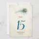 Bordsnumren i Böhmen bröllop med boskapsfjäder och teal ordalydelse. Underbar för boho bröllop och andra evenemang i vintage stil.