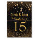 Stjärnsvarta och bordsnummer-kort från guld glitter bröllop för din personligt bröllp-deka. Svart bakgrund av träkolsmak med faux guld foil glitter överst och grund kant med silver och guld stjärnor utspridda överst. Ett metalliskt utseende i guld separerar guld färg personlig brud och groom namn och efternamn i elegant skript från ett jumbo guld hue-bordsnummer. Identisk på andra sidan. Anpassa individuellt och lägg till varje bröllop-bordsnummer-kort separat till din Zazzle-shoppingvagn. Perfekt för elegant Black och guld glitter bröllop, samt Underbara Gatsby inspirerade teman i Art Deco bröllop. Lämplig för andra särskilda tillfällen, t.ex. förlovningsfester, möhippa eller möhippor.