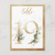 Vackert kort med botaniskt motiv - en vattenfärgad illustration av grönt löv och gyllene bordsnummer. Bord 19. Kontrollera alla tillgängliga nummer