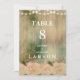 En Elegant rustiska bröllop-bordsnummer med träbakgrund, mjukt rosa ros och en sträng av ljus. Dessa bordsnummer i bröllop ingår i en komplett uppsättning.