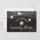 Oak Ridge Rustic Mörk Brown Barn Wood, Sparkling Mason Burk och Glowing String Ljus Design with Twinkling strands of dangling ljus and burk on a deep rik wood struktur med vita accents. Med Typsnitt för modern typografi. En rustik elegant land-jordbrukshus stil-design - Personlig Bröllop Middag Mottagningsgäst Sittplatskort för Bordsnummer i! ~ Kolla min butik för att se hela bröllop-svit för den här designen!