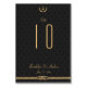 Bordsnummer i Nautiskt bröllop med gyllene ankare och anpassade tryckt på svart bakgrund med ankarpunkt mönster