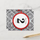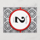 Bordsnumret Black and Silver Damask Red Trim Vykort