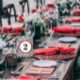 Black and White Silver Grått med Red Trim Bröllop Tabletop Signs Bordsnummer Cards