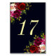 FÖRÄNDRAT BAKGRUND FÄRG. Bohemian stil Bröllop Bordsnummer Card med vattenfärgade illustrationer av burgundi, marsala, röda och rosa peonier och ro med fjädrar som visar på marin blå bakgrund. Det här är perfekt för höst/vinter, blommigt och stil vid inbrott. Matchande objekt är också tillgängliga. * Klicka på knappen "Anpassa" om du vill ändra färg, teckensnitt och storlekt.