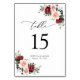 Det här anpassadet Bordsnummer Card är designat för att koordinera med vår samling av romska blommor och har vattenfärgsburguni och blommigtar med grönt löv och har ett svart snyggt med skript och serieteckensnitt. Om du vill göra avancerade ändringar går du till alternativet "Redigera med Design Verktyg" under Anpassa den här mallen.