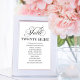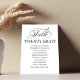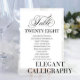Den här designen har ett kort för bordsnummer i bröllop med elegant, ett enkelt kalligrafiskt skript, i svart och vitt, ett minimalistiskt, typografiskt format, perfekt för klassisk mottagningsdekor.