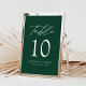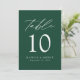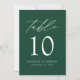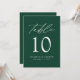 Trendig, minimalistiskt kort för bröllop-bordsnummer med vit, modern text med "Bord" i det moderna kalligrafiskriptet. Utformningen har en grönt eller en färg som du väljer. Utformningen upprepas på baksidan. Så här beställer du bord-kort för smaragdkort för grönt: lägg till ditt namn, datum för bröllop och bordsnummer. Lägg till varje nummer i din kundvagn individuellt och checka ut när du är avslutat.
