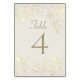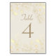 Kort för bordsnummer av elegant med delikata illustrationer av guld blommigt på en elfenbensbakgrund, framtagen med romantiskt skript och serif typsnitt. Ett vackert tillägg till klassiska, vintage- eller högtidliga bröllopsreceptioner - perfekt för samordning med fullt inbjudan.