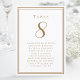 Vår gästlista för bröllop-bordsnumret i trendig innehåller en mall för bordsnummer och gästlista vid bord. Anpassa elegantens text och skript med gästens namn och detaljinformation i rustiskt brunt på en skarp vit bakgrund. Perfekt för bröllop, årsdag eller stor förlovningsfest. Baksidan är en dubblett av framsidan som gör det enkelt att visa från båda sidor. Begäran från anpassningsbar färg accepterades.