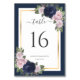 bordsnumren i elegantens marinblå och blommigt bröllop. Matchande objekt är tillgängliga.