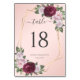 bordsnummer i bröllop i elegant med blommigt och geometrisk burgundi. Matchande objekt är tillgängliga.