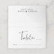 Chic bröllop bordsnummer placerar ett kort med "Bord" i ett modernt skript i snyggten och tomt linjer för att du ska kunna fylla i bordsnumret och namnen på dina gäster. På baksidan lägger du till din första namn gått med av ett hjärta och ditt mottagningsdatum.