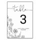 Detta eleganta bordsnummer-kort är perfekt för ett minimalistiskt bröllop. Blommigtens design har en enkel och elegant arrangemang av delikata svarta och vita vilda blommor parade med ett romantiskt kalligrafteckensnitt. Kortet skrivs ut på framsidan och baksidan (dubblan). Lägg till varje bordsnummer som du behöver i din kundvagn individuellt.