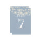 De här snyggt, dammiga blåsträngarna ljus dubbla-sidiga bordsnummer-korten är perfekt för alla firande. Designad av Thisisnotme©