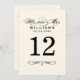 OBS! Varje bordsnummer-kort måste anpassas och läggas till individuellt i kundvagnen. Elegant kort innehåller ett blomstrande Mr. och Mrs. monogram med svart kalligrafi och rulla. Två sidoformar. Om du vill ändra bakgrunden till färg (mjukt vitt elfenben) går du till Anpassa / Redigera / Bakgrund.