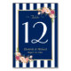 Bordsnumret elegant Navy Blue Blommigt Bröllop Bordsnummer