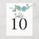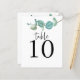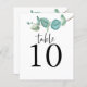 En storlek 4,5 x 5,6-tums halvblank vikt på 110 lbs, som är av samma tjocklek som ett vykort, med EN per lakan. Bordsnumret Bröllop med minimalistiskt Eucalyptus-skript. Bord är i ett set handskriftsskript stil och ditt bordsnummer under. Anpassa numret enkelt. Samma design finns också på baksidan.