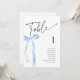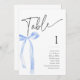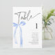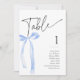 Coquette Blue Bow Bordsnummer Cards för en "Hon är Gifter sig" eller en "Nåt blått innan jag gör", den Möhippan. Matchningsinbjudningar, kartor för bilagor och skyltar finns också tillgängliga i den här samlingen.