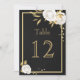 elegant anpassade bordsnummer kort vita blommor med ett svart bordsnummer av guld löv