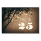 Det här bordsnumret (eller platskortet) har filtret Mason burk och hängsträngen ljus på det bruna träd grenar. Kort för bordsnummer av perfekt för teman för det virtuella landsbyggsbröllopet.