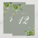 Dessa elegant botaniska grey blommigt bröllop-bordsnummer kan vara personlig i chic typografi på en sage grönt bakgrund. Korten skrivs ut på framsidan och baksidan (dubblan). Designad av Thisisnotme©