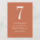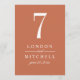 Den tidslösa orangen av koppar och det vita bröllop-bordsnumret har helt enkelt en vacker typografi som kombinerar ett färgat kalligrafiskt skript med klassiskt blocktecken. anpassningsbarnas monogram och bordsnummer kan vara helt personlig för din bröllopsdag. Observera att varje bordsnummer måste anpassas och läggas till individuellt i shoppingvagnen (1,2,3...osv.). Var snäll och shoppa vår samling av klassisk Elegant Copper Bröllop för att samordna utformningen.