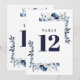 Bordsnumret Land Blommigt för marin blå Elegant Inbjudningar