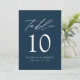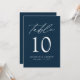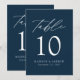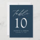 Trendig, minimalistiskt kort för bröllop-bordsnummer med vit, modern text med "Bord" i det moderna kalligrafiskriptet. Utformningen har en marin bakgrund eller en valfri färg. Utformningen upprepas på baksidan. Så här beställer du flottkorten bord: lägg till ditt namn, datum för bröllop och bordsnummer. Lägg till varje nummer i din kundvagn individuellt och checka ut när du är avslutat.