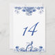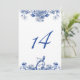 Bordsnumret Mönster i Chinan med blå och vit Blom Inbjudningar
