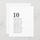 En storlek 4,5 x 5,6-tums halvblank vikt på 110 lbs, som är av samma tjocklek som ett vykort, med EN per lakan. Bordsnumret Namn för enkel minimalistisk gäst. Enkelt kombinera stil med bordsnumret större i gemener i snyggt och namn som gäst för bord under och mycket tomt utrymme. Anpassa texten enkelt till dina egna detaljer. Samma design finns på baksidan
