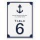 Bordsnumret Nautical Navy Blue Anchor Bröllop OBS Kort