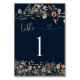 Bordsnumret Navy Blue Tiny Wildblomma Bröllop Bordsnummer
