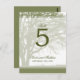 Ett falltema för bordsnumret bröllop med en oliv grönt ekdesign i träd. Ändra numret för varje bord som du behöver och lägg till ett i taget i din kundvagn.